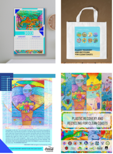 The Technical Working Group (TWG) for the Plastic Recovery and Recycling for Clean Coasts Project met on March 11, 2022. TWG members attended personally and via zoom, to discuss the proposed designs for the project's logo, calendar, notebook, eco-bag and shirt.